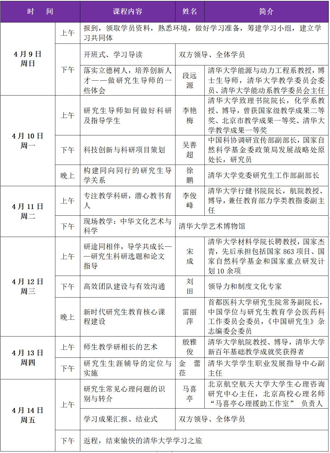 為全面貫徹落實(shí)全國研究生教育會(huì)議精神,構(gòu)建研究生導(dǎo)師(以下簡(jiǎn)稱導(dǎo)師)素質(zhì)能力“五德并重”體系,加強(qiáng)建設(shè)一流博士生導(dǎo)師隊(duì)伍,不斷提高研究生培養(yǎng)質(zhì)量,根據(jù)中共中央、國務(wù)院印發(fā)的《深化新時(shí)代教育評(píng)價(jià)改革總體方案》(中發(fā)〔2020〕19號(hào))、《教育部關(guān)于加強(qiáng)博士生導(dǎo)師崗位管理的若干意見》(教研〔2020〕11號(hào))、教育部印發(fā)的《關(guān)于全面落實(shí)研究生導(dǎo)師立德樹人職責(zé)的意見》(教研〔2018〕1號(hào))等文件精神,強(qiáng)化研究生導(dǎo)師作為第一責(zé)任人的指導(dǎo)責(zé)任,學(xué)校定于 2023年4月在清華大學(xué)舉辦研究生導(dǎo)師綜合素能提升研修班。現(xiàn)將有關(guān)事項(xiàng)通知如下。