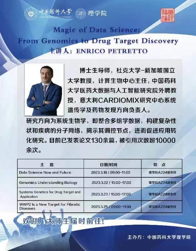 Systems Genetics for Drug Target and Application | 2023.3.23 / 15:00-17:00 | 理學(xué)院A224報(bào)告廳 |